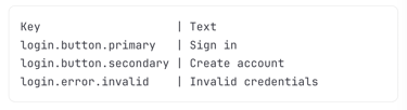Create naming conventions: Use hierarchical keys (section.component.type)